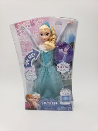 By pressing the snowflake button on her chest, Elsa will break out in her signature song, “Let It Go”, for girls to sing and dance to. As she sings, re-live the movie moment when Elsa flees the kingdom of Arendelle in search of a place where she doesn’t have to hide her magical powers. Once she discovers the North Mountain, Elsa creates her own castle, dress, and Olaf the snowman out of snow and ice. Includes 1 Singing Elsa Fashion Doll. Doll cannot stand alone.