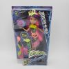• The doll wears a stunning dress with a multi-colored graphic print and pink tulle trim that really brings the look to life. Neon jelly accessories, including pink shoes and an orange studded belt, are electrifying. And a voltageous hairdo with colorful streaks is fierce fun to style.