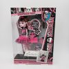 Monster High students prepare for the big school photo day. Draculaura’s ready for her photo. Doll is fully articulated so she can be posed in many different ways. Includes doll, diary, brush, and accessory.